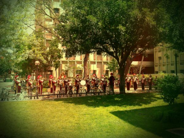 RT @tangiechen: Spirit of Troy outside #USC 's Watt Hall, music for poor #architecturestudents during #charettepic.twitter.com/c6g6piYo