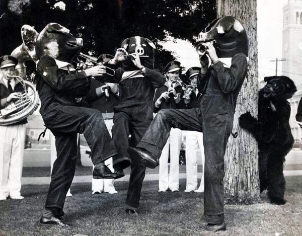 RT @usctmb: What's going on in this 1933 photo of pigheaded band members? Guesses? We'll post the answer tomorrow.pic.twitter.com/ydoY8waf