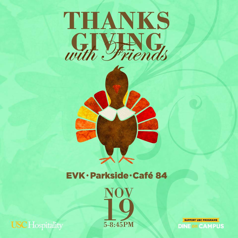 RT @USCHospitality: Give thanks! Thanksgiving with Friends is tonight in all 3 USC Residential Dining options!pic.twitter.com/WqfbvE1S1w