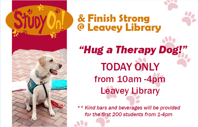 MT @usc_owhp: Join us TODAY in front of Leavy for a FULL DAY of therapy dogs and snacks! See you there!pic.twitter.com/yUcb9LJYs3