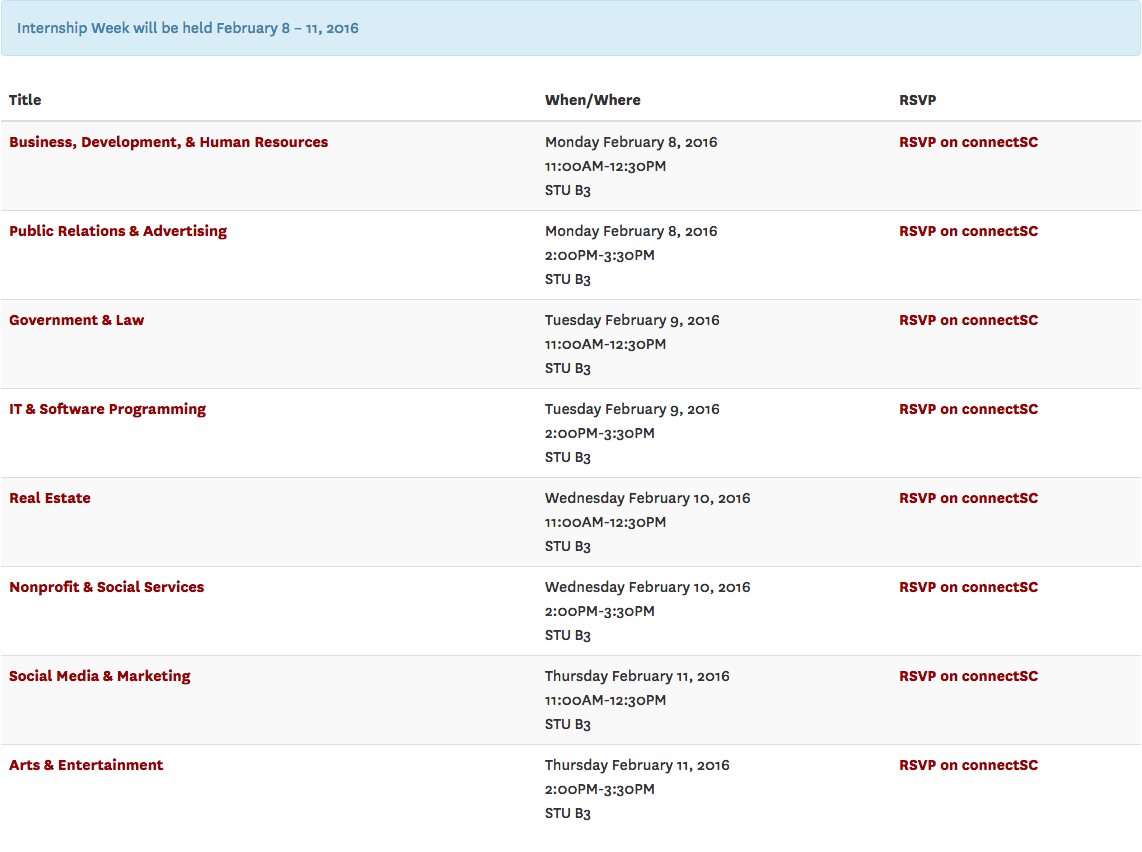 Looking for internships? Go to @USCCareerCenter's Internship Week - starting Monday! http://ow.ly/Y0jiv pic.twitter.com/Z1AONQAzi6