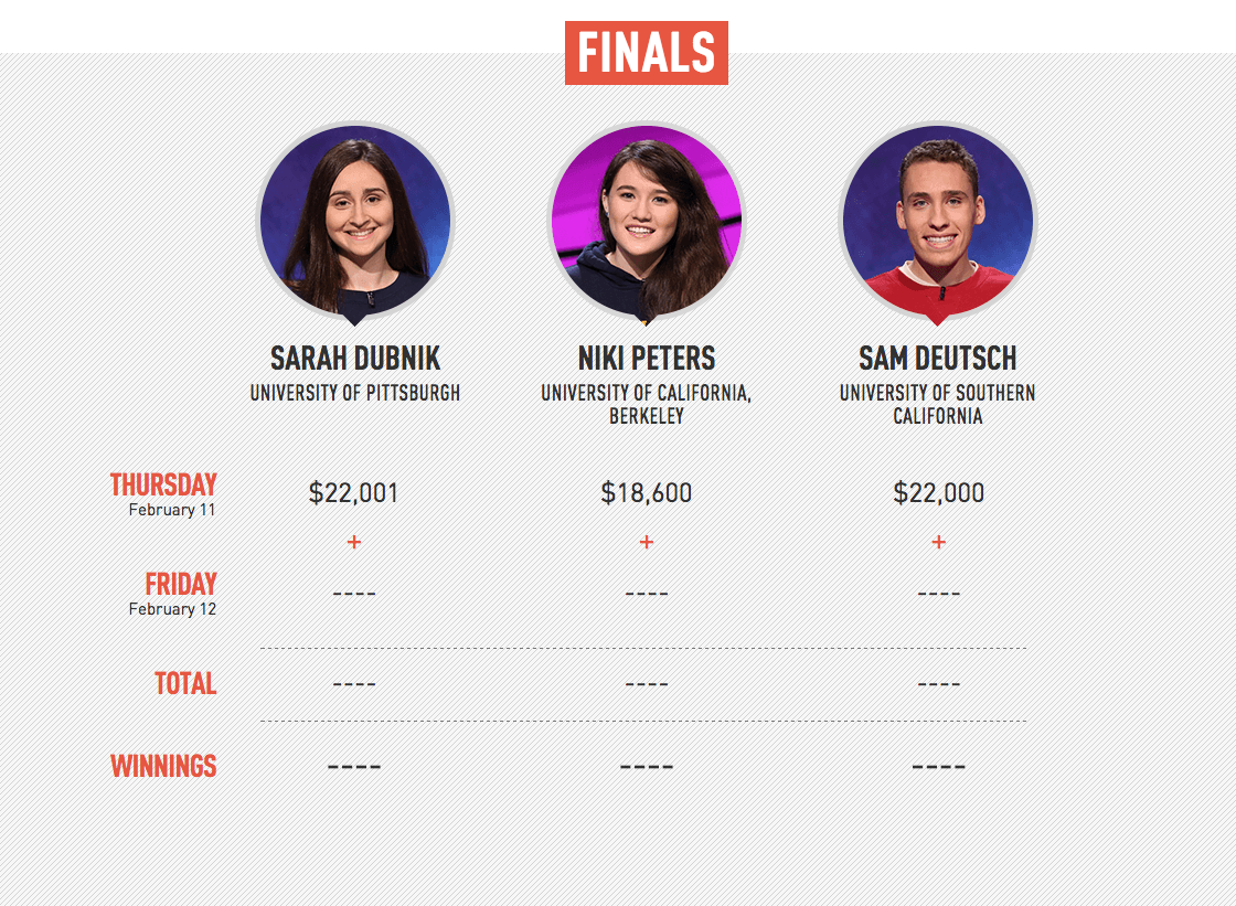 Sam Deutsch competes in the @Jeopardy College Championship Finals tonight, 7 pm! #FightOnpic.twitter.com/AddxSLTcaQ