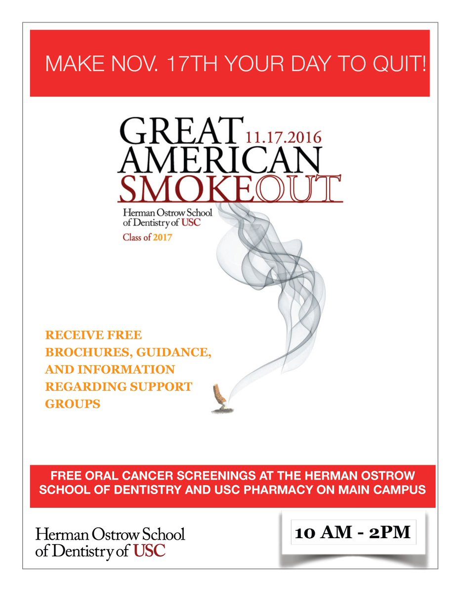 RT @ostrowadmission: Today is the #greatamericansmokeout. Free oral health screenings @ostrowusc & @USCSchPharmacy.pic.twitter.com/fXxqByb2s8