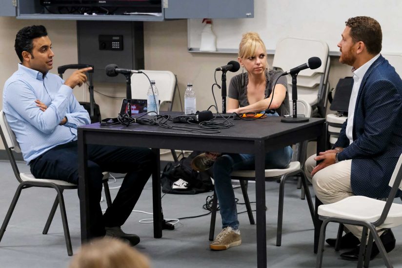 Podcasting with class: @AnnaKFaris and @unqualified co-host @SimSarna co-teach a podcasting course at @USCSDA: http://ow.ly/MLGr30fYB19 pic.twitter.com/Yxv7rYocF1