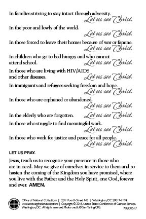 Father, in our distress we call upon you: stretch out your merciful hand and heal those afflicted by cancer. May the healing touch of your Son lift up those who suffer from cancer and heal them from their illness. In Jesus' name, we pray, Amen.