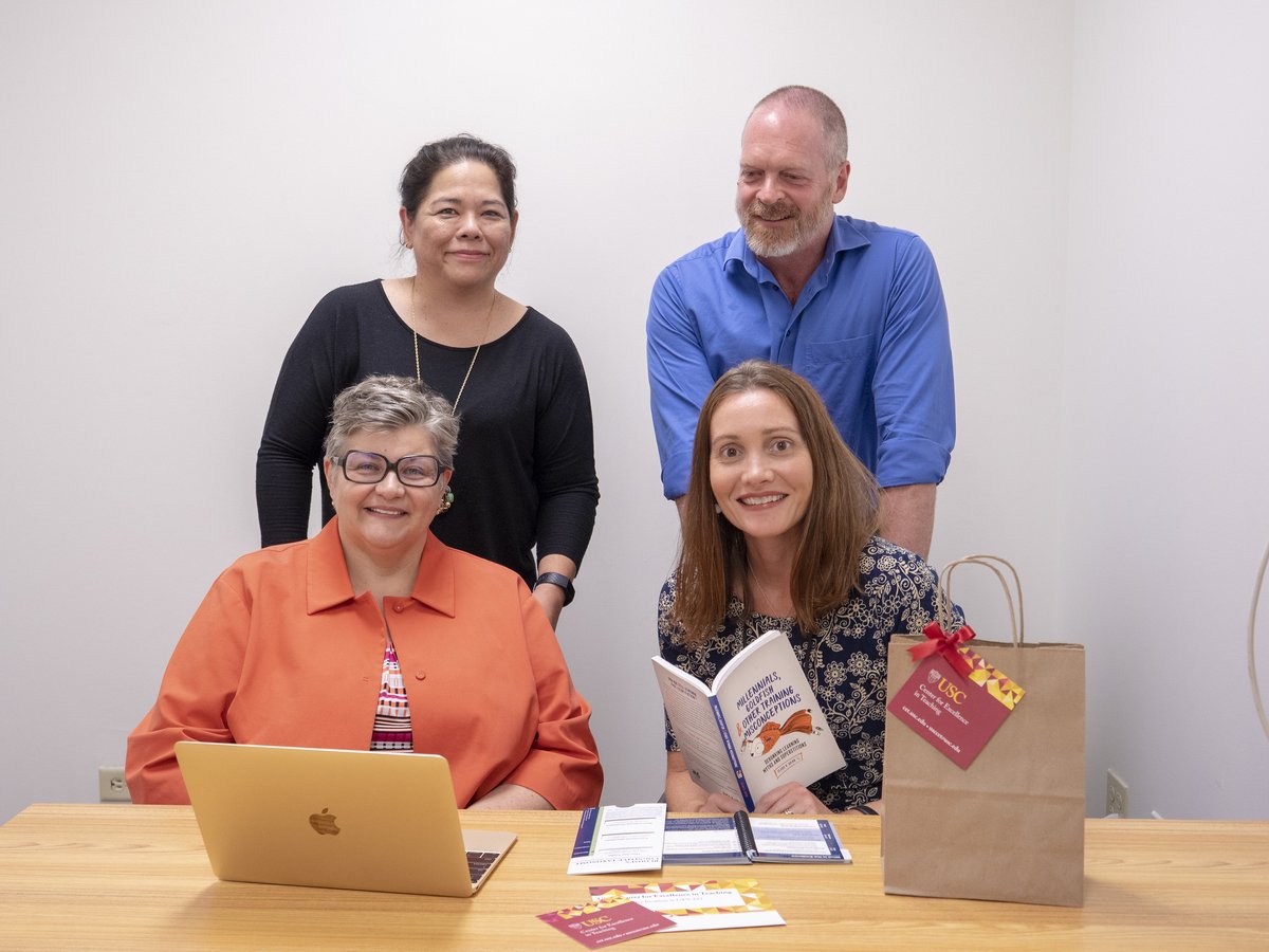 Good morning! Ellen Nagamine (back left), Office Manager for the Center for Excellence in Teaching, joins the center's instructional designers Robert Sweeney (back right), Ingrid Steiner (front left), and Katherine Guevara (front right) to prepare materials for an event.pic.twitter.com/bzn7SAiEKW