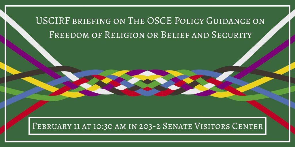 Join USCIRF next week for our briefing on the new OSCE Policy Guidance on Freedom of Religion or Belief and Security. https://www.uscirf.gov/uscirf-events/briefing-freedom-religion-or-belief-and-security-new-policy-guidance-the-osce …pic.twitter.com/ciLKS1PLrR
