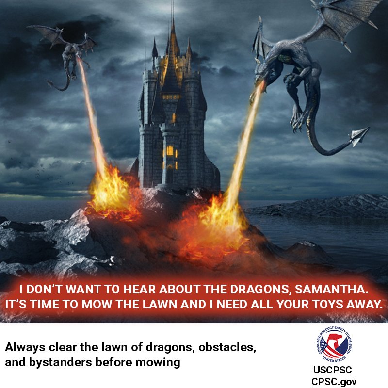 Dedicated to the parents who live for well-kept landscaping. We have to clear that lawn, Samantha.