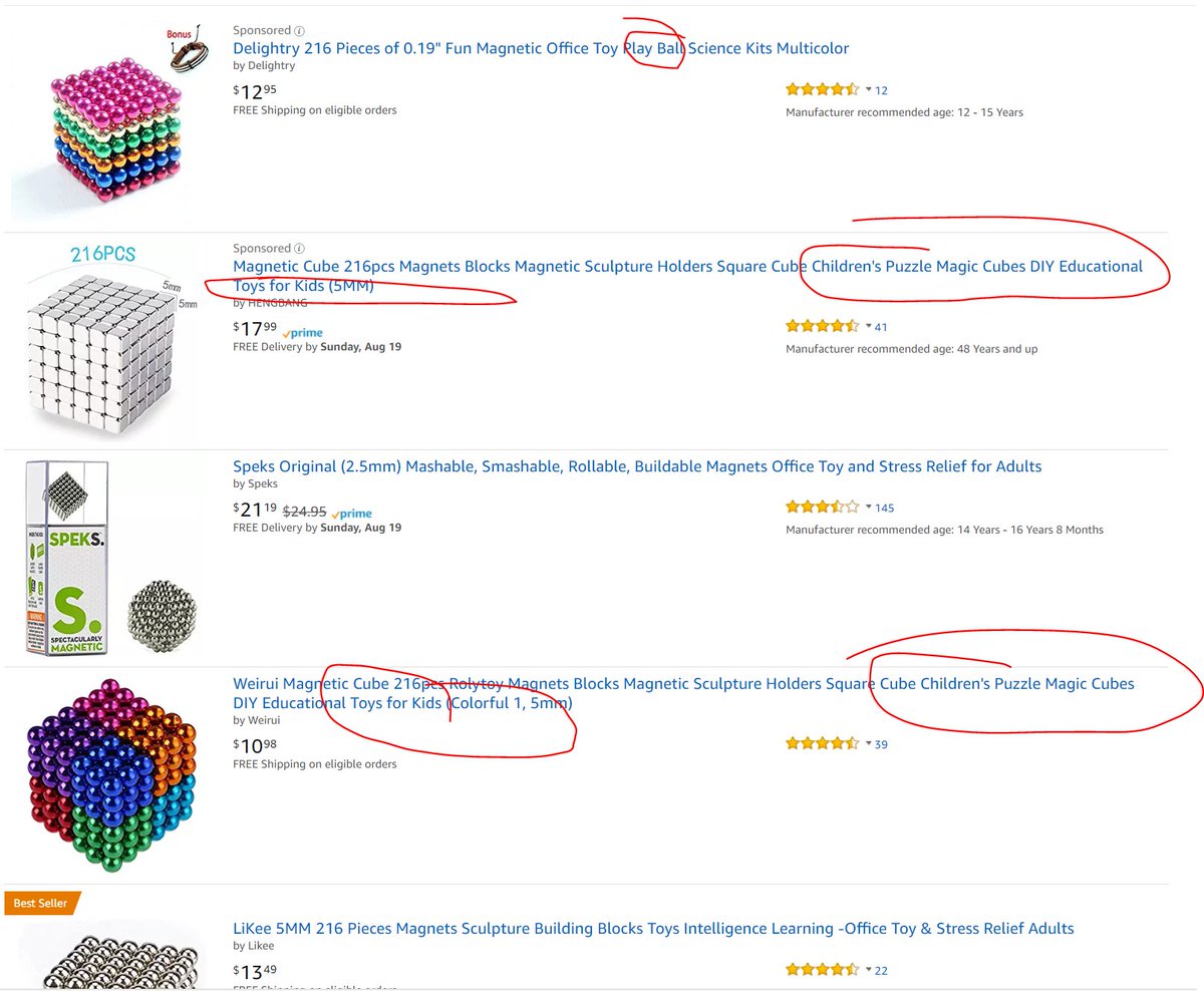 Tell your compliance people to enforce ASTM-F963. High powered hazardous magnets on amazon right now:pic.twitter.com/CG4ykic5vQ