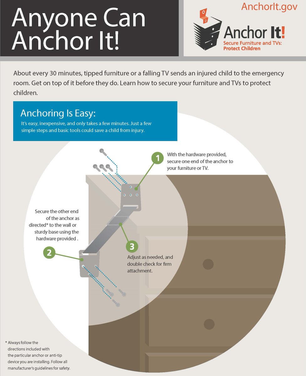 Are the TVs and furniture in your home anchored? Learn about the dangers of tip-over incidents and prevention methods at http://AnchorIt.gov #AnchorItpic.twitter.com/4DFirg2DYS