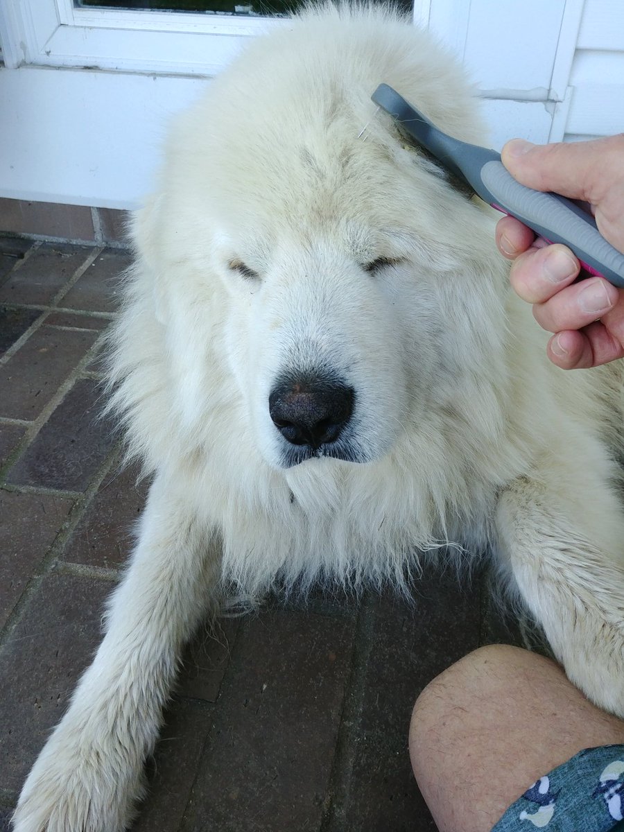 G'nite Quinn! (You're tired early!) This guy is blowin' coat. Birds are very happy, making warm nests with it. Cold spring y'know.pic.twitter.com/20ftAzL8ym