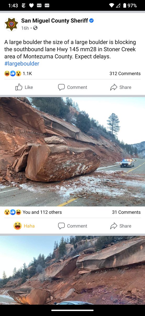 Omg, it's now a yearly event! San Miguel Sheriff's office posted a brand new 'large boulder the size of a large boulder' (or more accurately, size of a small house