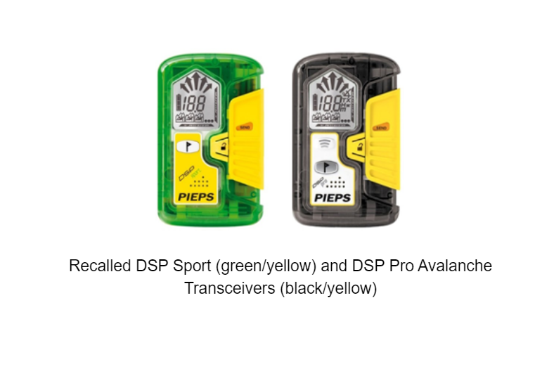 #Recall: @blackdiamond PIEPS DSP avalanche transceivers can switch modes resulting in loss of communication, severe bodily harm; one death reported. Free hardcase. CONTACT: 866-306-0865 or https://www.blackdiamondequipment.com/en_US/content/DSP-recall/ …. Full recall notice: https://bit.ly/3tebF0v pic.twitter.com/SJoSDjE0Ug
