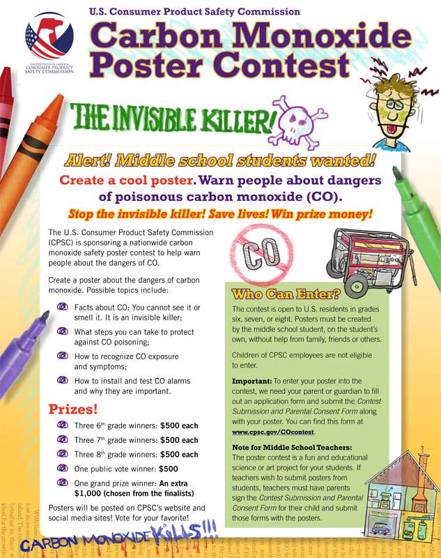 Watch #CPSC’s video on carbon monoxide poster contest for middle schoolers. Win a prize! http://1.usa.gov/1xat2Ls pic.twitter.com/RWlj8cbbUl