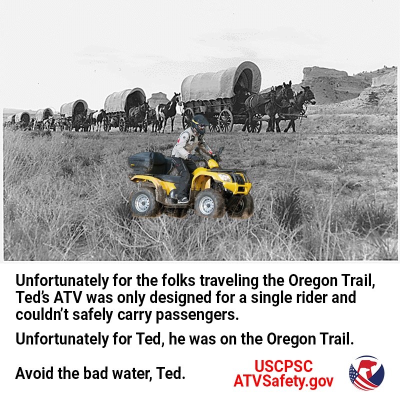 Never carry passengers on a single-rider #ATV. Find more safe riding tips at http://ATVSafety.gov  #ATVSafetypic.twitter.com/BWSp2KV7nt
