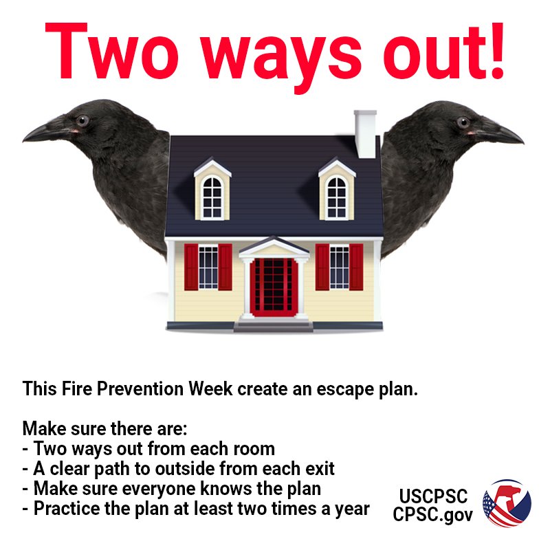 Quoth the Raven, "Make a home fire escape plan with your family this #FridayThe13th.” #FirePreventionWeekpic.twitter.com/eT2FAw4Odg