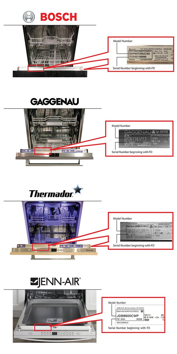#Recall Expansion: @BoschAppliances, Geggenau, @jennairUSA, @Thermador dishwashers; fire hazard. Get free repair http://bit.ly/2hXIdIX pic.twitter.com/hrZfcQdtJ8
