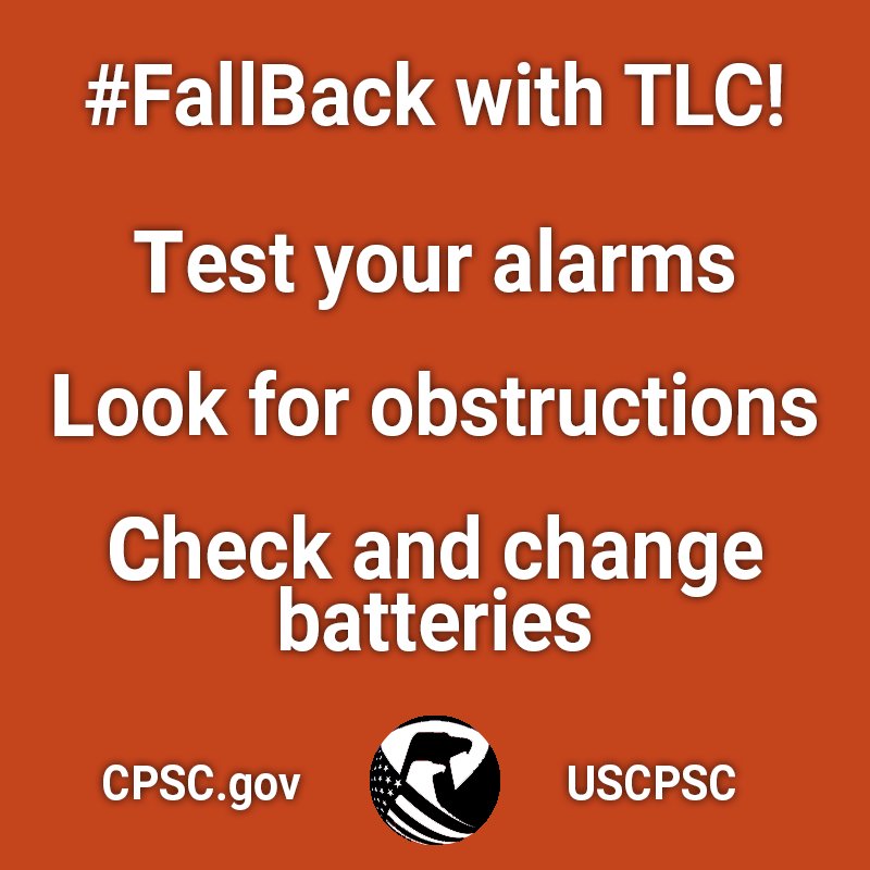 Almost time to #FallBack. Make sure to TLC while you do #FireSafety #daylightsavings Blog: http://bit.ly/2zou9mK pic.twitter.com/BVJKN9cRRo