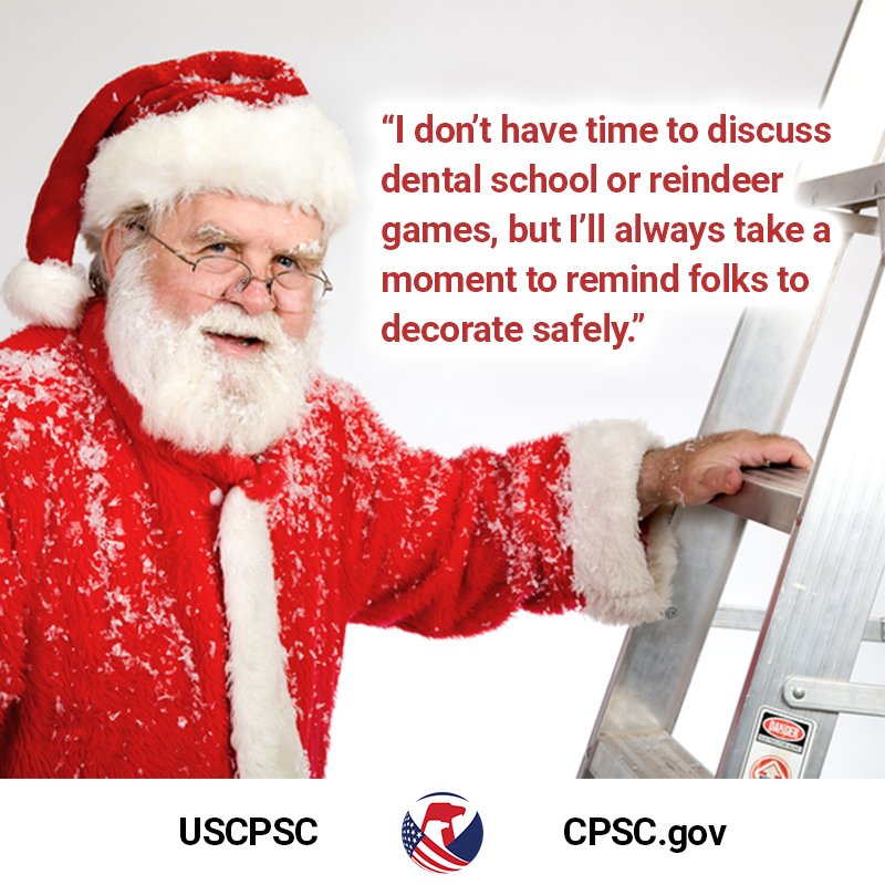 Santa's priorities are in order. Ladder safety tips for your holiday decorating: http://bit.ly/2noA2Lo  #holidayhazardspic.twitter.com/T2Vhc6vuQD