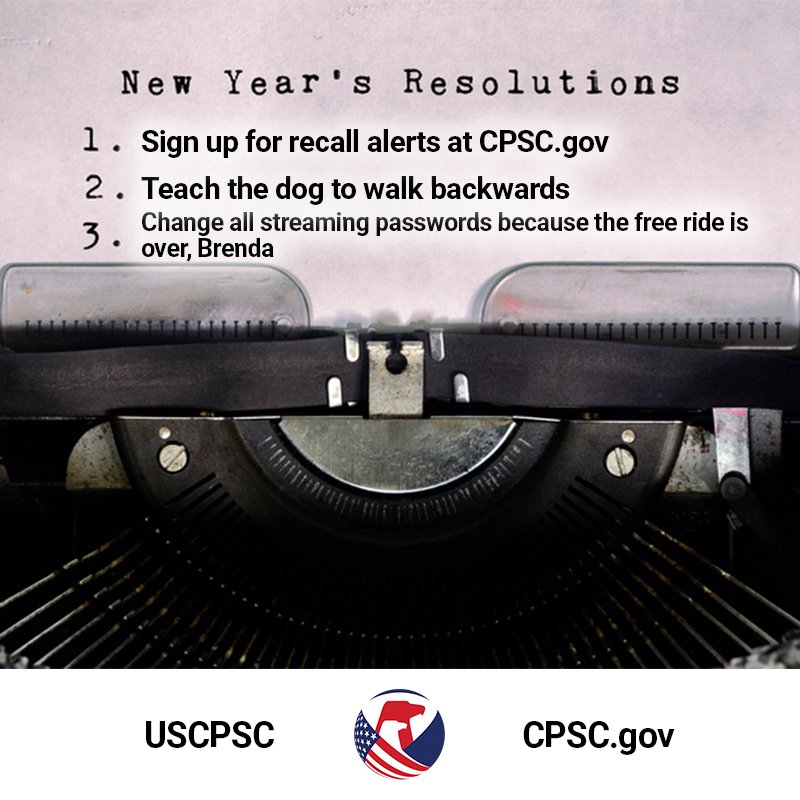 It's that time of year. Subscribe for recall emails: https://cpsc.gov/Newsroom/Subscribe … #NewYearsResolution #NewYearspic.twitter.com/hWLIHfTX7p