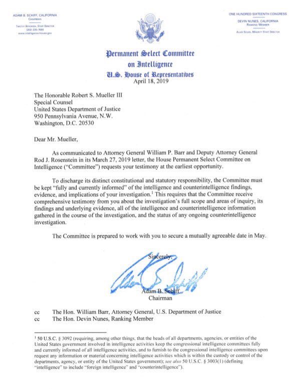 @AdamSchiff to get Special Counsel#Mueller to publicly testify before the House Intelligence Committee.pic.twitter.com/wtV4QtNEVQ