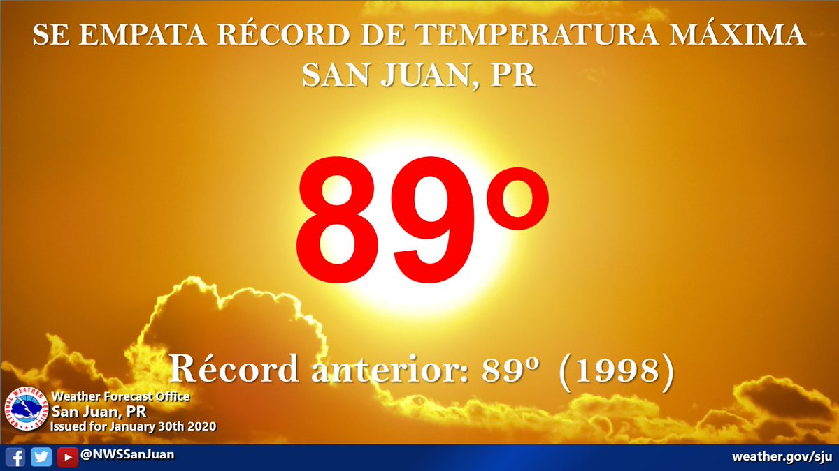 Se empata record de temperatura máxima de 89 grados para San Juan en el día de hoy. El record anterior fue establecido en el 1998.