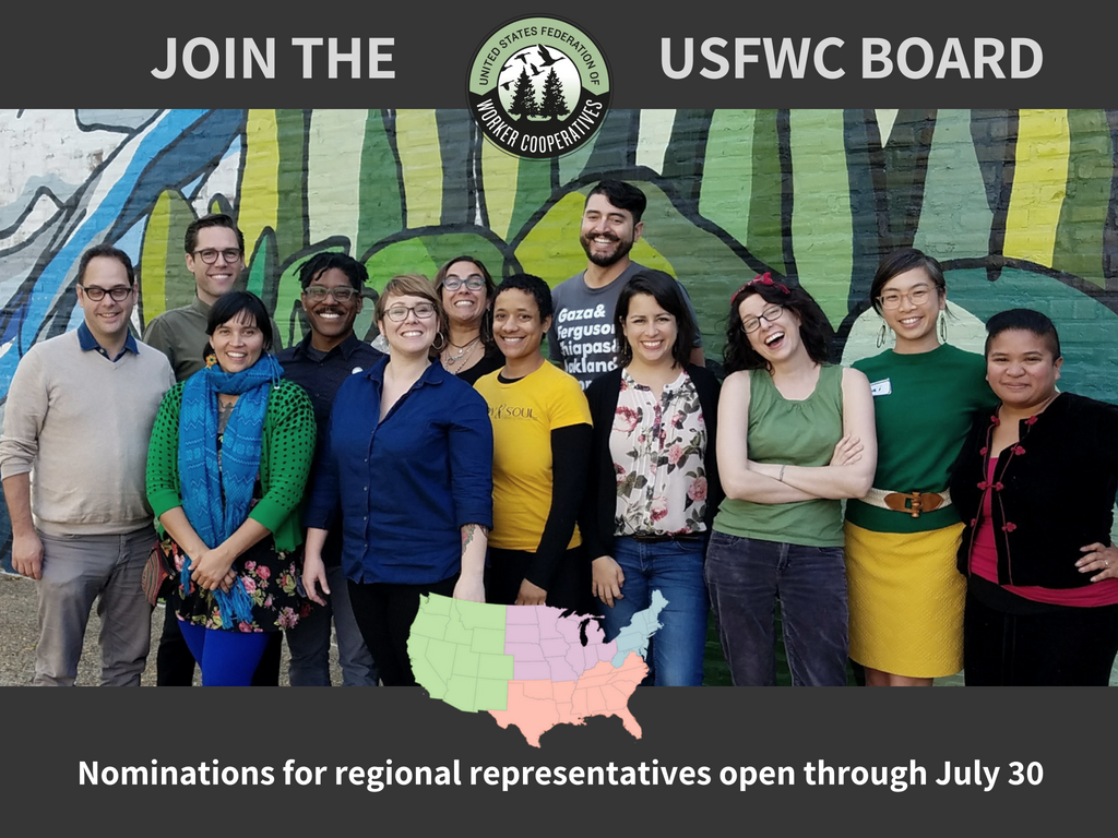 We're now accepting nominations for the USFWC Board of Directors! This year we're voting on Regional Reps — join this fun-loving crew of cooperative lovers and represent worker co-ops from your area. https://usworker.coop/board-of-directors-nominations/ …pic.twitter.com/5F94DZ47FK