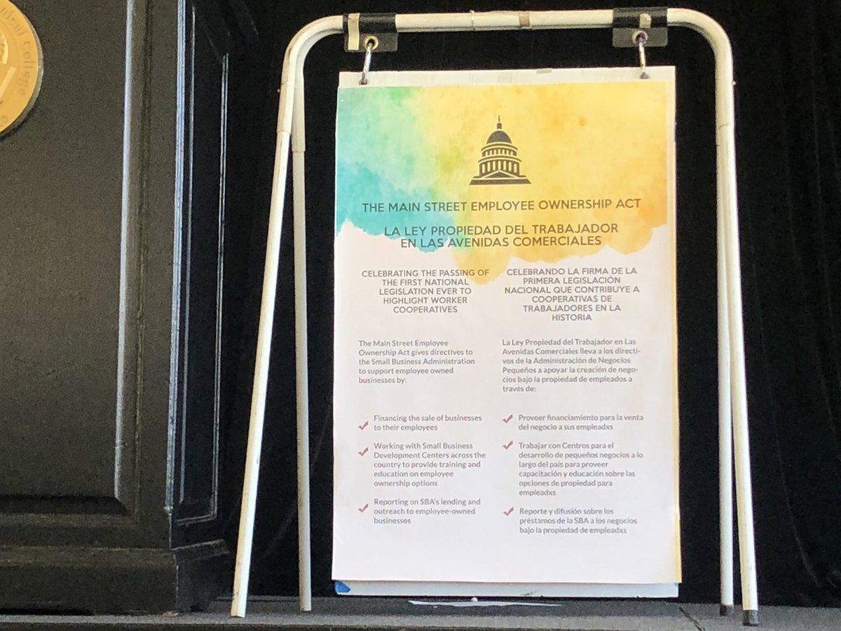 “Main Street is the opposite of Wall Street. And we’re proud to be able to be a part of building that!” - our ED @Estebantitos talks about the significance of the Main Street Employee Ownership Act passage and implications for the worker cooperative movement’s growth #WCNC18pic.twitter.com/ciOomEK6Bw