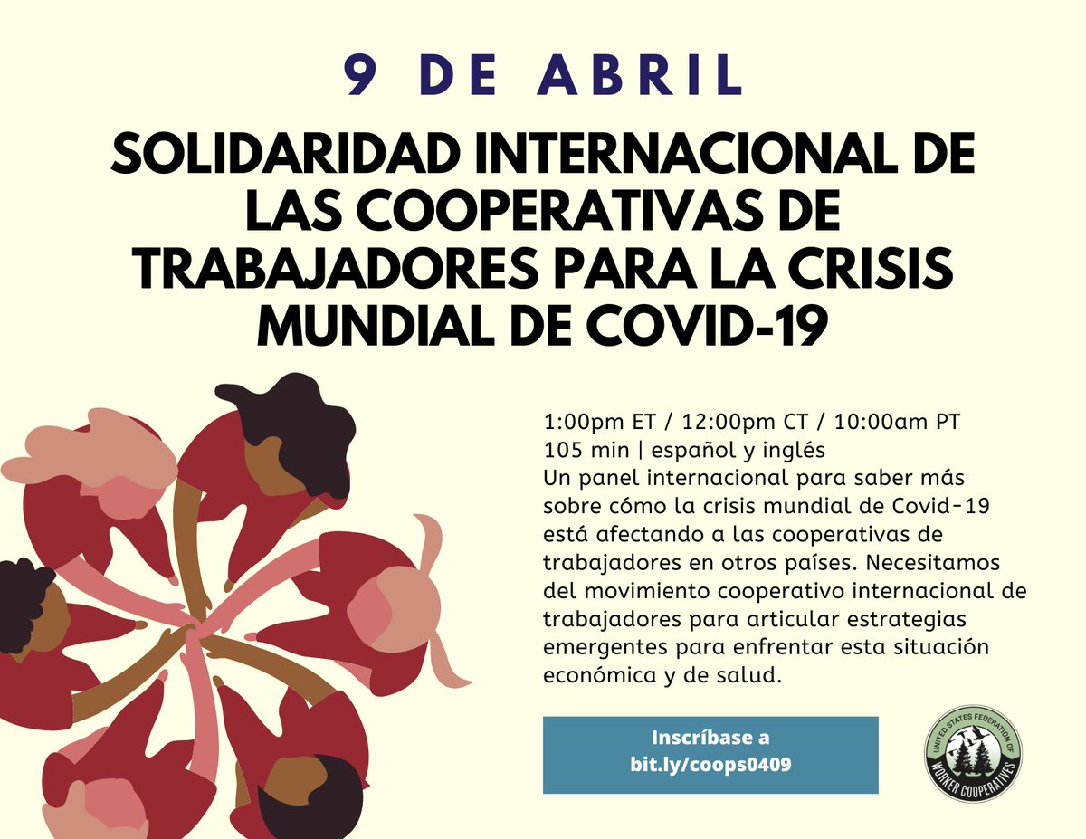 Unete a nuestra discusión internacionalista sobre el impacto de la pandemia #COVID19 a través de las fronteras. Como pueden las cooperativas articular estrategias emergentes en este momento para enfrentar la crisis de salud y economía en este momento? http://bit.ly/coops0409 pic.twitter.com/Z6FmdfcIPI