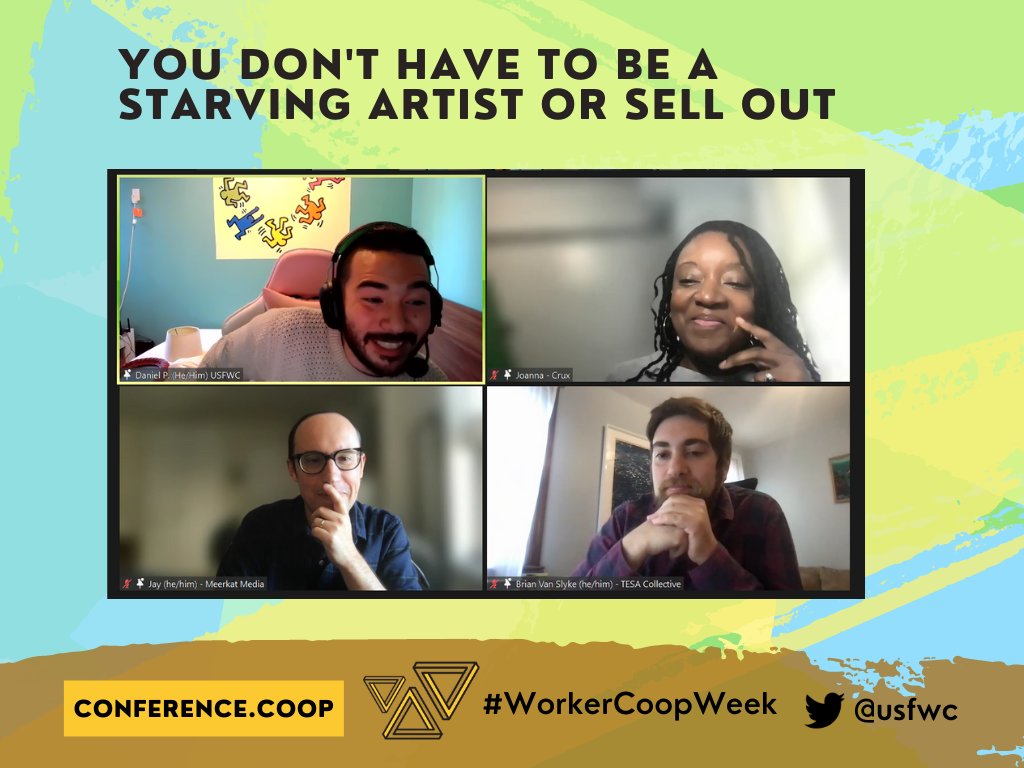 “In the arts and culture field we don’t talk about money because.. it might show us how much artistic directors are getting paid compared to the lowest paid person? [In a co-op] Power is shared — one worker, one vote” says Daniel Park of USFWC and Obvious Agency #WorkerCoopWeekpic.twitter.com/MEQ08a7tAS