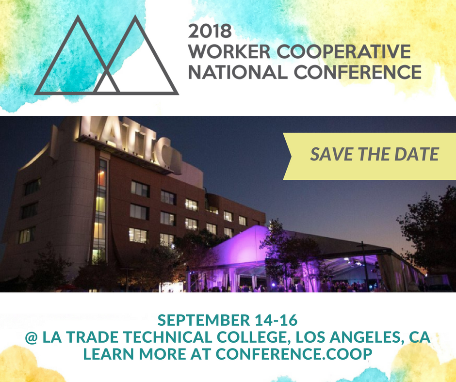 Make sure Sept 14-16 is marked on your calendars! The USFWC and @Institute_coop are hosting the worker co-op national conference in LA at @LATTC — we're looking forward to seeing all of our worker-owners and allies there! #WCNC18pic.twitter.com/T91PlRlvcp