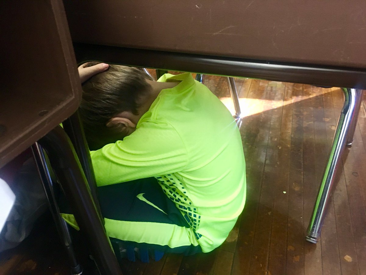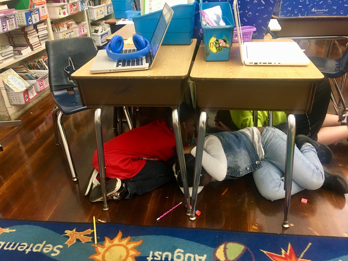 #ShakeOut at Dubois Elementary School. Students ~ DROP,COVER & HOLD ON!#greatshakeout2017pic.twitter.com/J67XOPrWip
