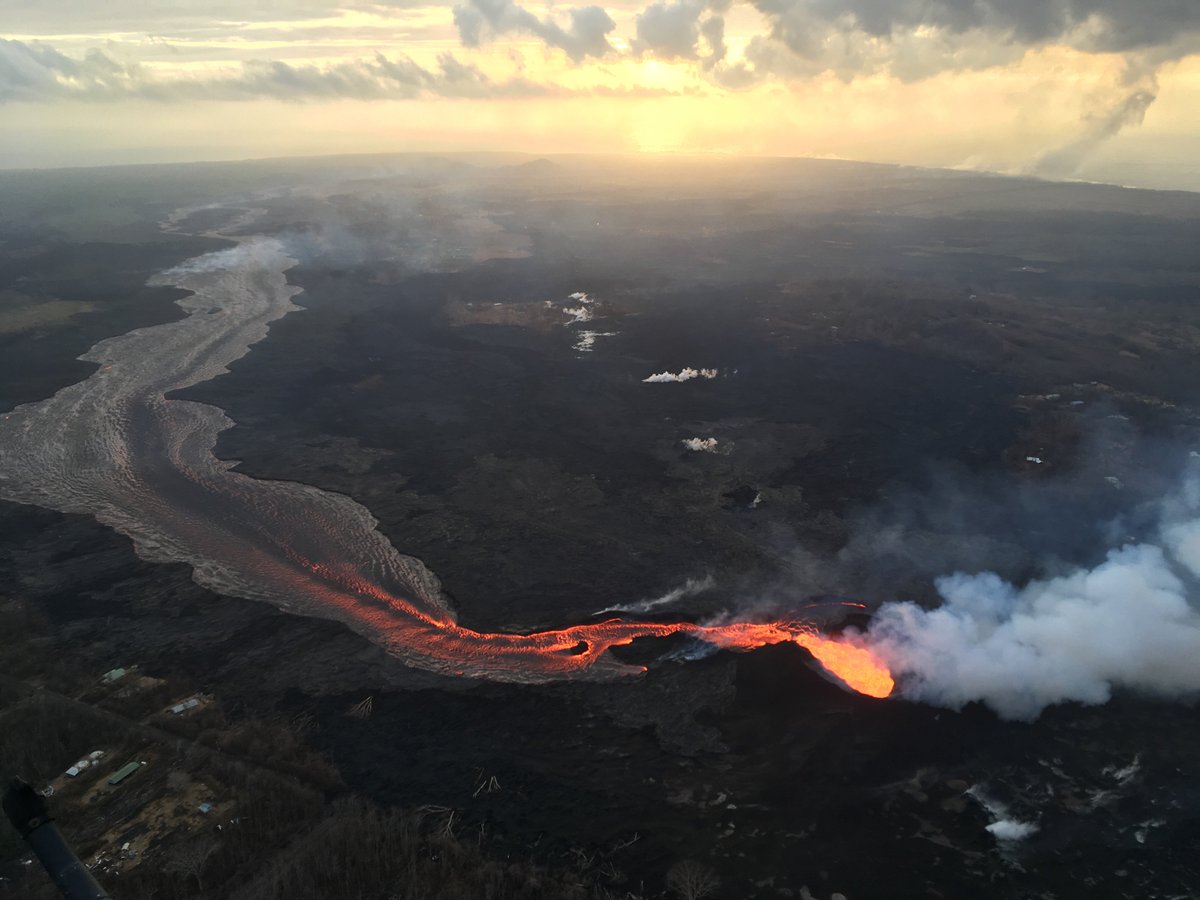 #LERZ shows what's hot and what's not: fissure 8 feeds lava into a perched channel that turns south near Kapoho Crater; ocean entry active at southermost point. https://go.usa.gov/xU56R pic.twitter.com/QdIj6QNOJa