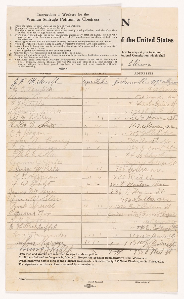 The instruction page attached to this 1911 woman suffrage petition from Chicago shows that suffragists adopted labor union tactics to build working-class support for woman suffrage. #19thAt100 #RightfullyHerspic.twitter.com/mxeyOvPkWJ