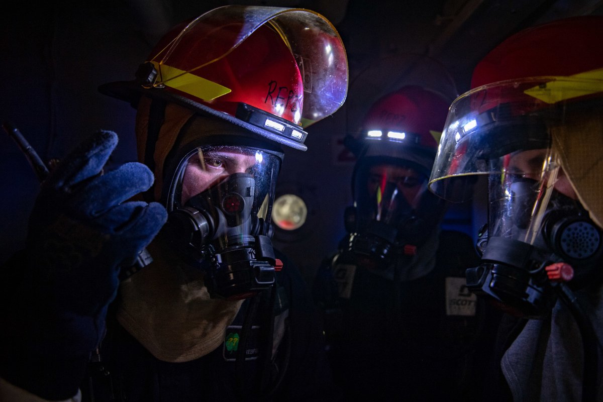 Sailors stand watch aboard #USSGreenBay@US7thFleet.