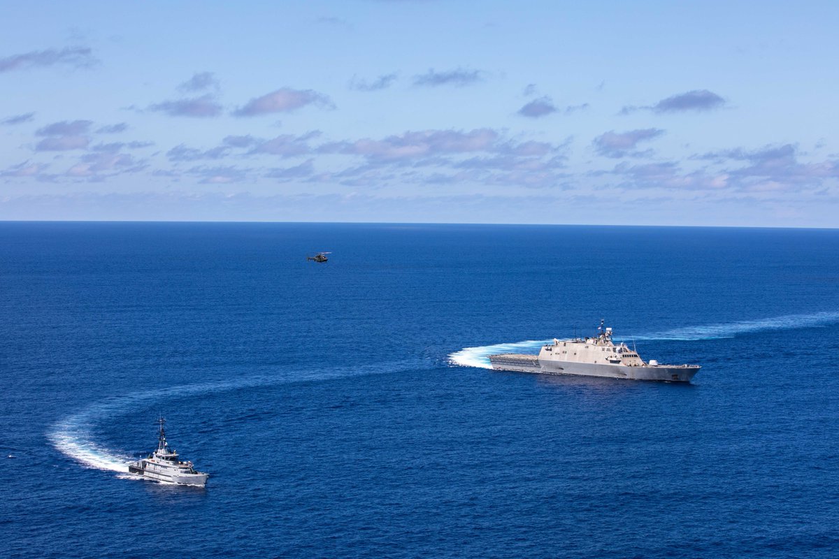 #USSCharleston (LCS 18) conducts maritime operations with Royal New Zealand Navy ships HMNZS#TeKaha (F77) and HMNZS#Aotearoa (A11)pic.twitter.com/QMM7BGc1Fp