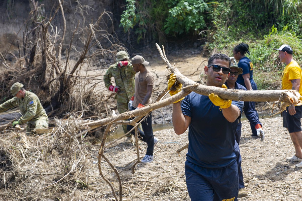 Sailors assigned to #USSFrankCable (AS 40), move tree limbs alongside members of the#AustralianDefenceForce in support of Operation Flood Assist 2022, working side-by-side with Australian military forces to clear debris from impacted areas.pic.twitter.com/eIm6Kxx8EA