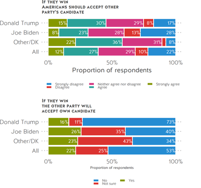 @USSC polling conducted prior to#ElectionDay in the US, FEWER THAN HALF of Americans agreed that no matter who won the presidential election,@JoeBiden or@realDonaldTrump, all Americans should accept him as the president. https://buff.ly/3389Eb7 pic.twitter.com/8Bk1DX98fb