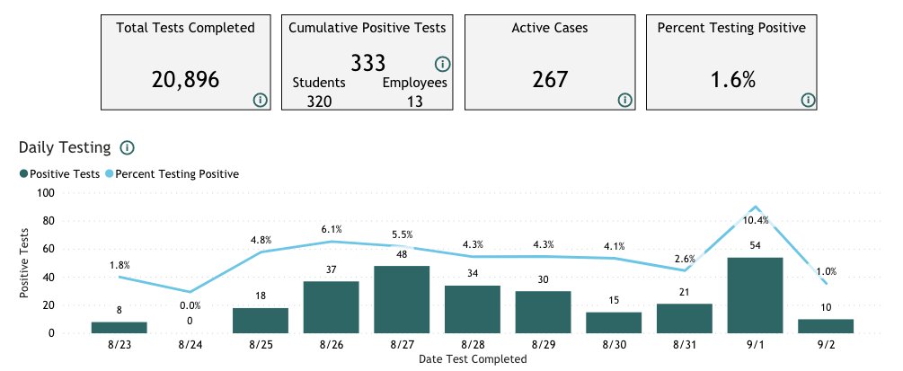 Tulane University had 54 positive tests on Tuesday and has 267 active cases.pic.twitter.com/9TGCst0fXV