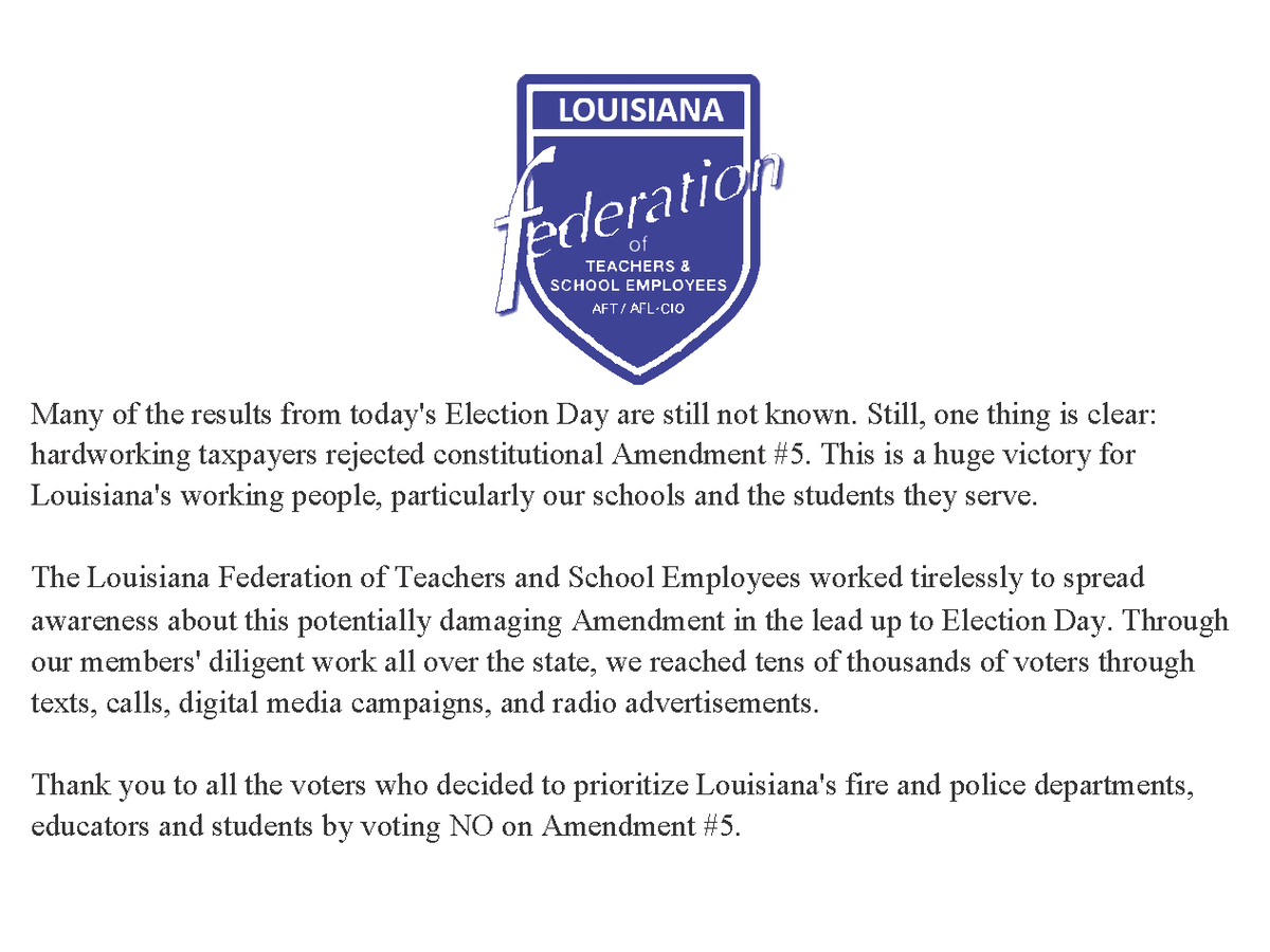 Amendment#5 defeated victory for Louisiana working families!https://twitter.com/LaFedTeachers/status/1323844762747678722 …