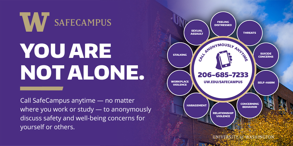 Do you have well-being or safety concerns for a friend, roommate or co-worker? Not sure what to do? Call SafeCampus anytime - no matter where you work or study - to anonymously discuss the situation, get support and learn about response options.pic.twitter.com/nvtiuSMdUZ