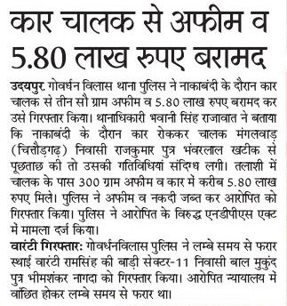 उदयपुर पुलिस ने नाकाबन्दी के दौरान अफिम व 5.80 लाख रूपये बरामद कियेpic.twitter.com/MddKuyC3Ze