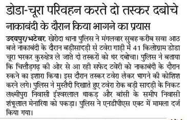उदयपुर पुलिस ने डोडा चुरा की तस्करी करते दो युवको को किया गिरफ्तारpic.twitter.com/jLY90Jq8Yz