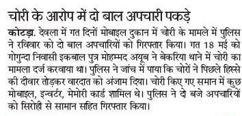उदयपुर पुलिस ने चोरी के आरोप में दो बाल अपचारी पकडेpic.twitter.com/vULenUJ54C