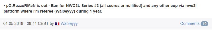 GCS America con artist 🇭🇷Razzorman has been removed by clan @ProGaming_wc3 from their team. He has been banned from nWC3L for a year as well. I appreciate the entire scene solidarity in cleansing WC3 from cheaters and hackers. Let's now move forward to new exciting projects!pic.twitter.com/KxnNaPeVgi