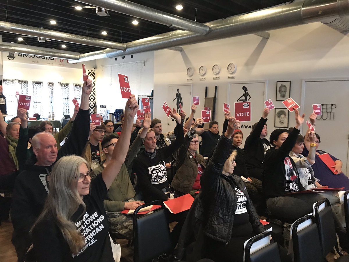 Here we have members of USM voting unanimously to adopt our goals for 2019 to build the movement for #reparations and white solidarity with the @APSPusa, the vanguard party of the African (black) working class! Tune in to our convention https://youtu.be/D-hOvN2_Z9Y pic.twitter.com/dB8d4SFUi7