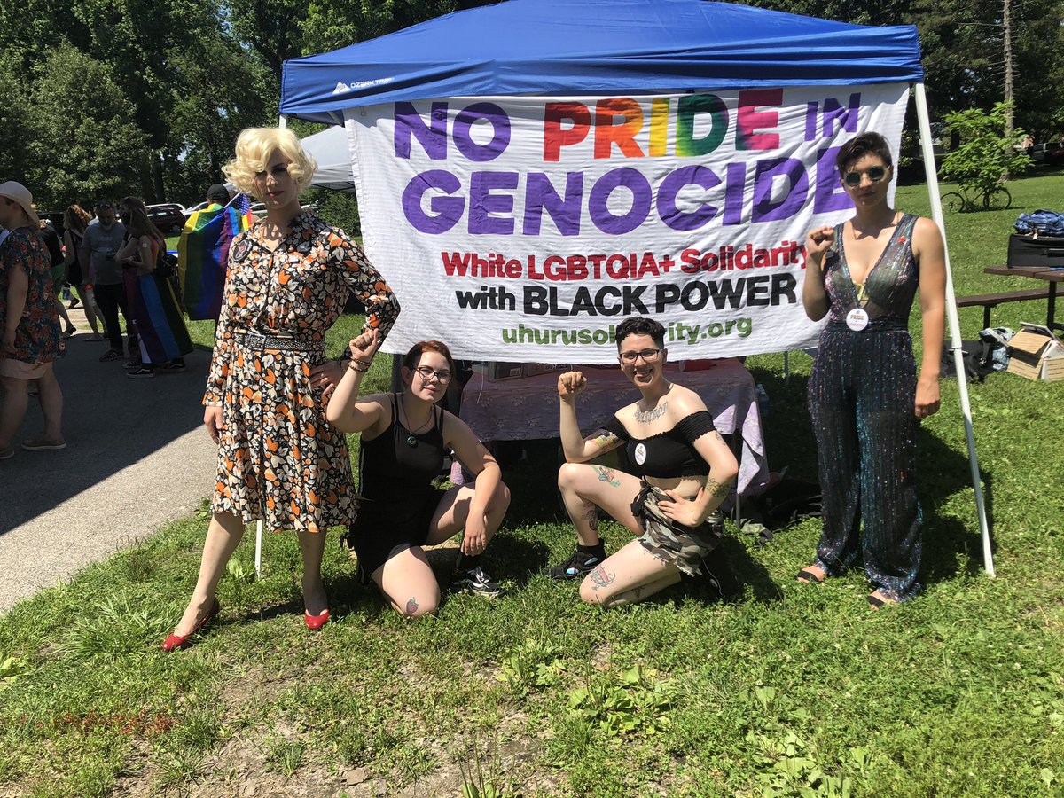 Comrades in #Oakland and #StLouis were at the Pride fests and dyke marches today winning the LGBT sector of the white population to the truly progressive stand of #reparations to the African community. #NoPrideInGenocide!pic.twitter.com/ILgZsYV5gB