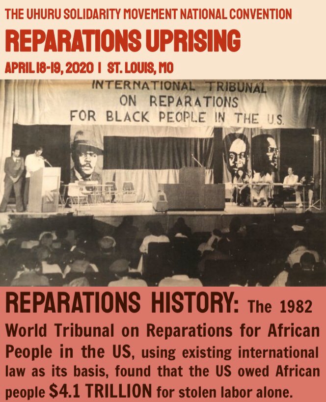 For #BlackPowerHistoryMonth we have some #ReparationsHistory for you! In 1982 founders of the Uhuru Movement held the first World Tribunal on Reparations for African People in the US in Brooklyn, NY?pic.twitter.com/L5OXW9a9Km