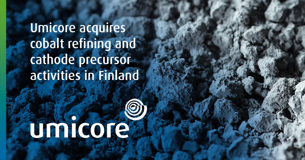 Umicore to acquire cobalt refinery and cathode precursor operations in Finland from Freeport Cobalt. Through this acquisition Umicore expands its integrated battery materials footprint. Read our press release here: https://bit.ly/2W2HsVG pic.twitter.com/tYW5v8Xvkp
