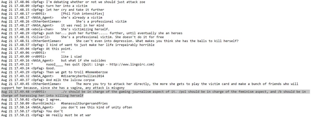 THAT IRC CHANNEL IS LITERALLY THE GAMERGATE IRC WHAT IS WRONG WITH YOU